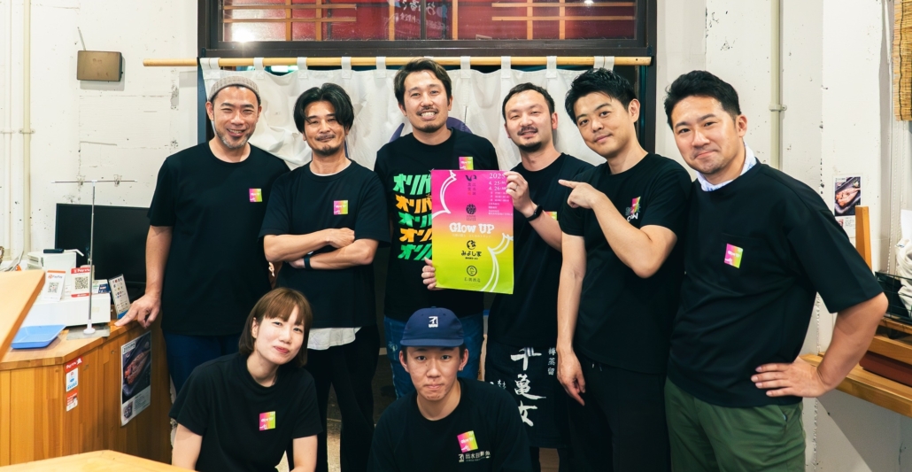 「GLOW UP」は、若潮酒造株式会社、株式会社サカナカケル(出水田食堂)、株式会社下園薩男商店、有限会社 鹿児島ラーメン、株式会社オコソコなど、鹿児島を代表する食品事業者の経営者がフラットに集い、焼酎「GLOW」と地元の食材を掛け合わせた新しい食体験を提供する立ち呑みイベントとして発足しました。