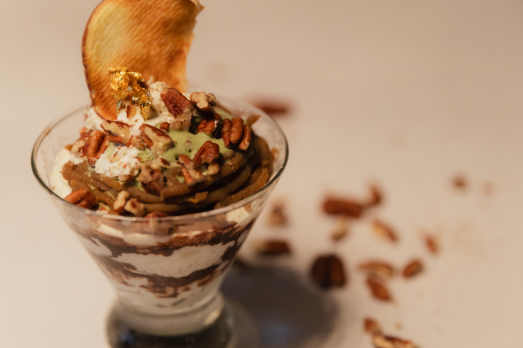 実は過去に、アメリカ・ロサンゼルスのレストランで、うちのさつまいもペーストを使った抹茶ティラミスをつくっていただいたことがありました。それをミーティングの中でぽろっと話したら、「それはもっと早く言ってください」と(笑)。そこから一気に、抹茶との掛け合わせを真剣に考えるようになりました。