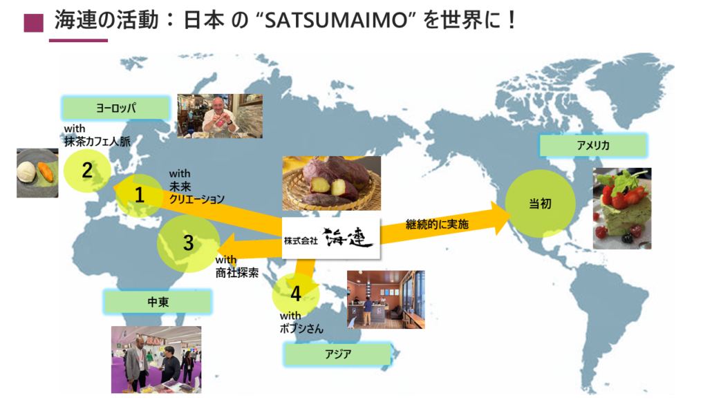 テーマはシンプルで、「さつまいも製品をもっと海外に広げたい」ということでした。実際、アメリカには輸出できていました。ただ、実質的にはアメリカ一本足打法で、そこから先の拡大がなかなか見えていなかったんです。